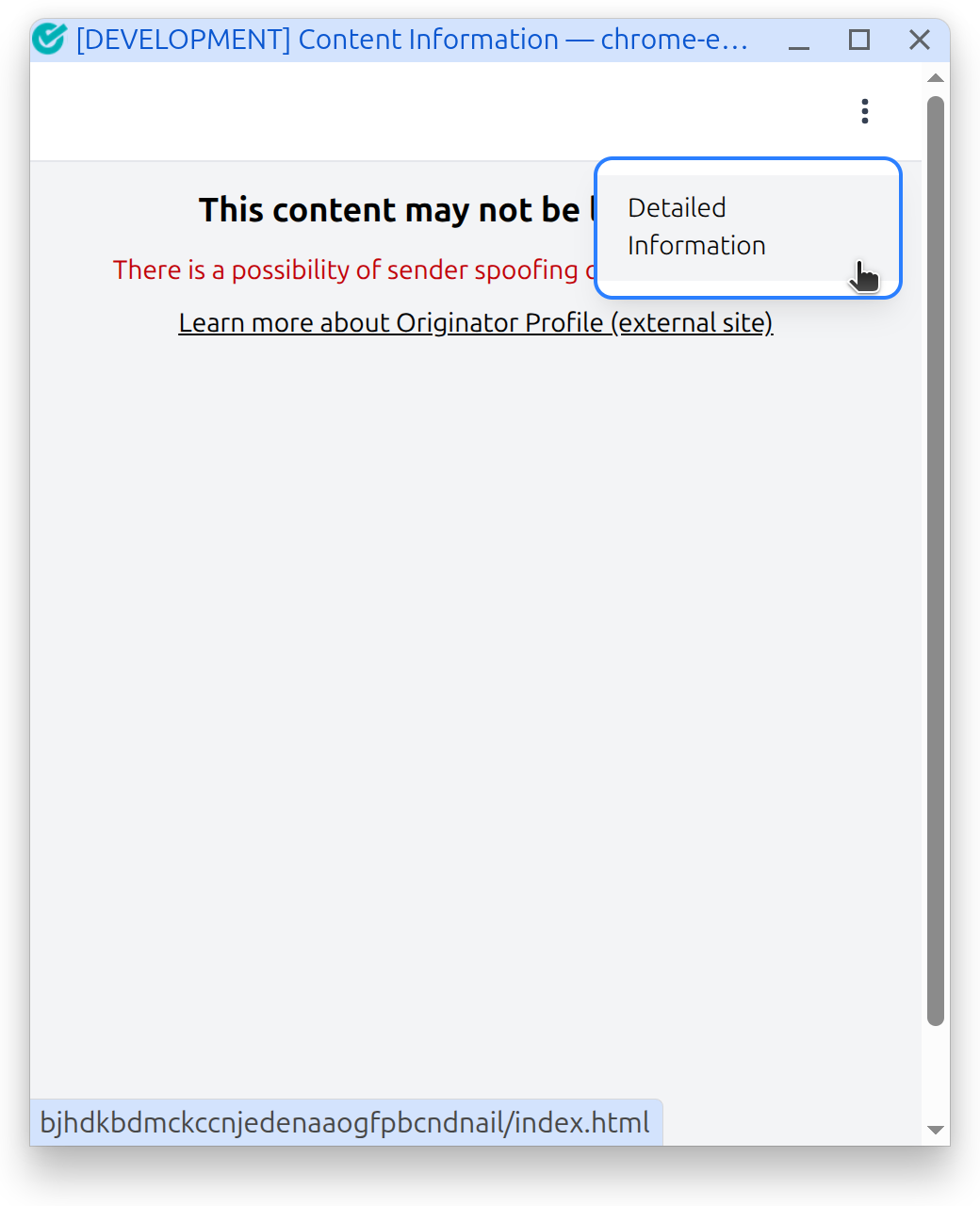 検証に失敗した場合、拡張機能のアイコンをクリックし、ケバブメニュー(︙ 縦三点アイコン)から「詳細情報」を選択すると、検証結果の詳細を確認できます。
