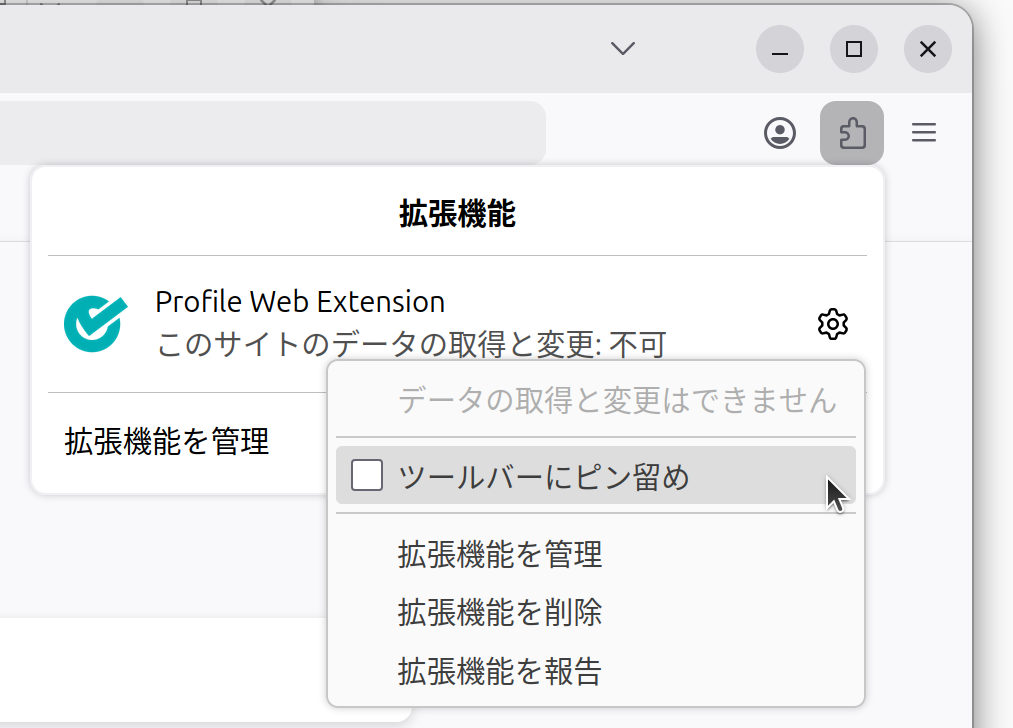 拡張機能をすぐに使えるよう、ツールバーに固定しておくと便利です。